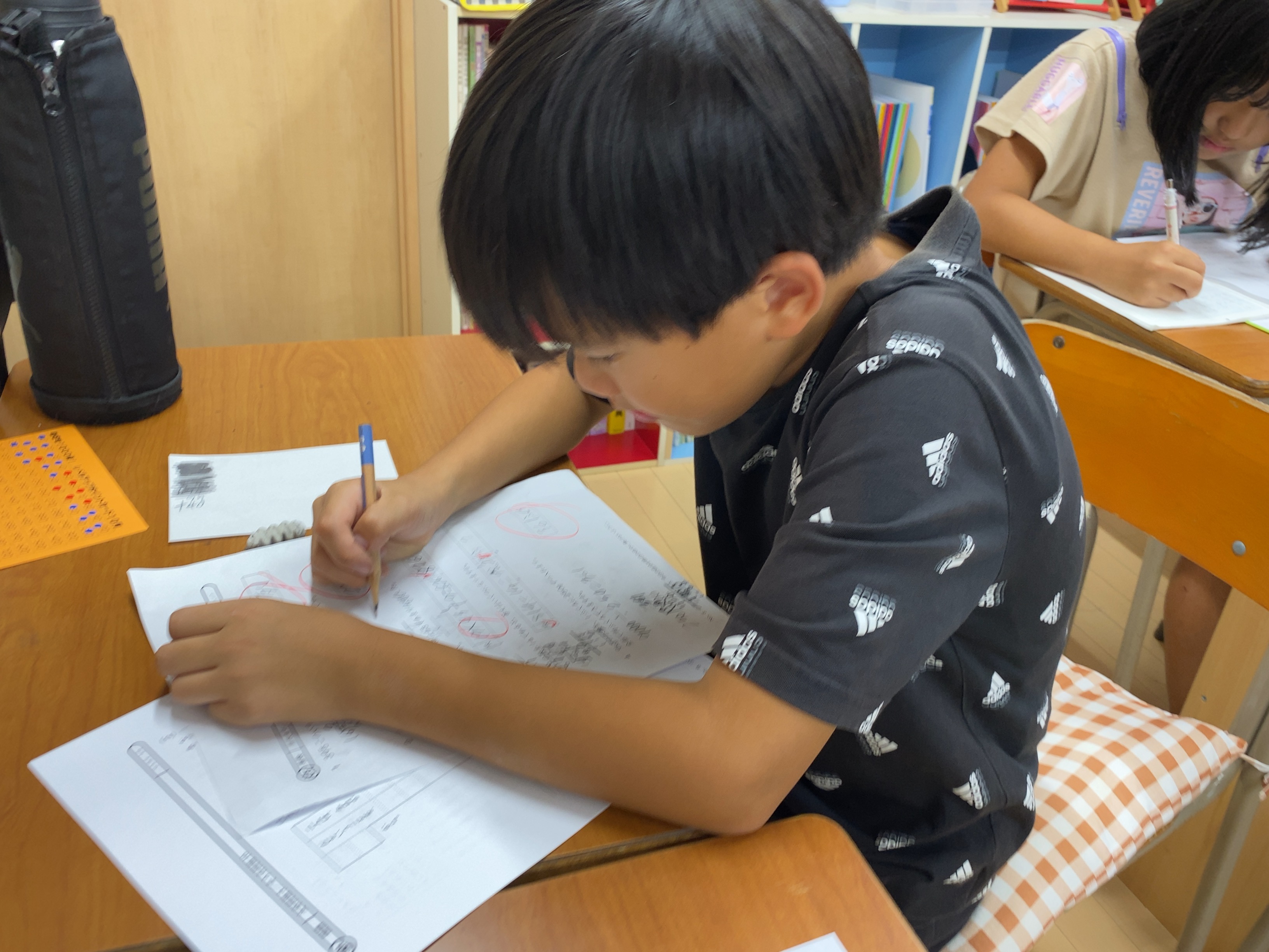 算数を受講する場合は100math計算,計算特訓(5年生から)を,国語を受講する場合は漢字テストを行います。